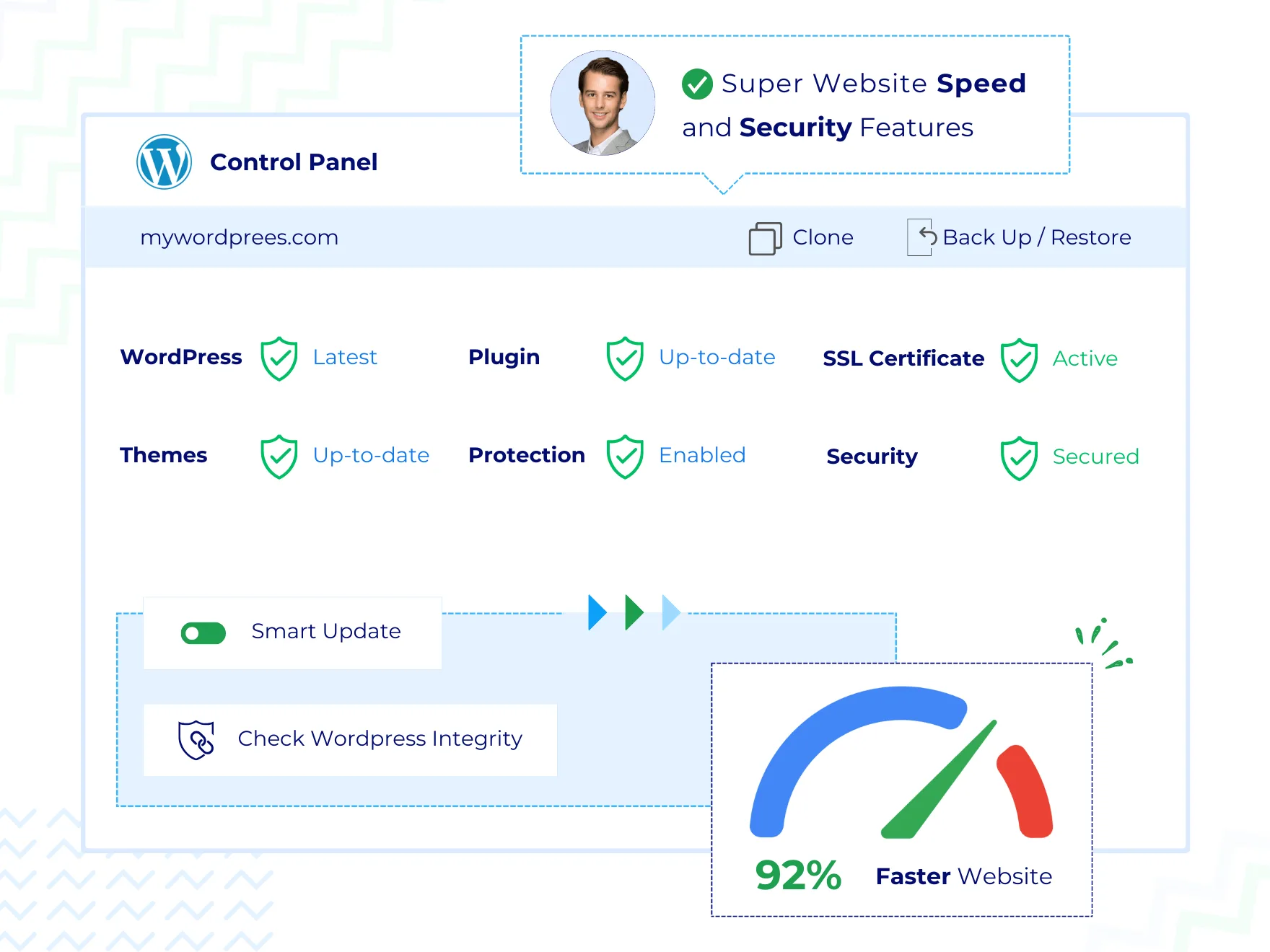 • WordPress autoupdatesKeep your WordPress site secure with automatic updates for the core software, plugins, and themes.